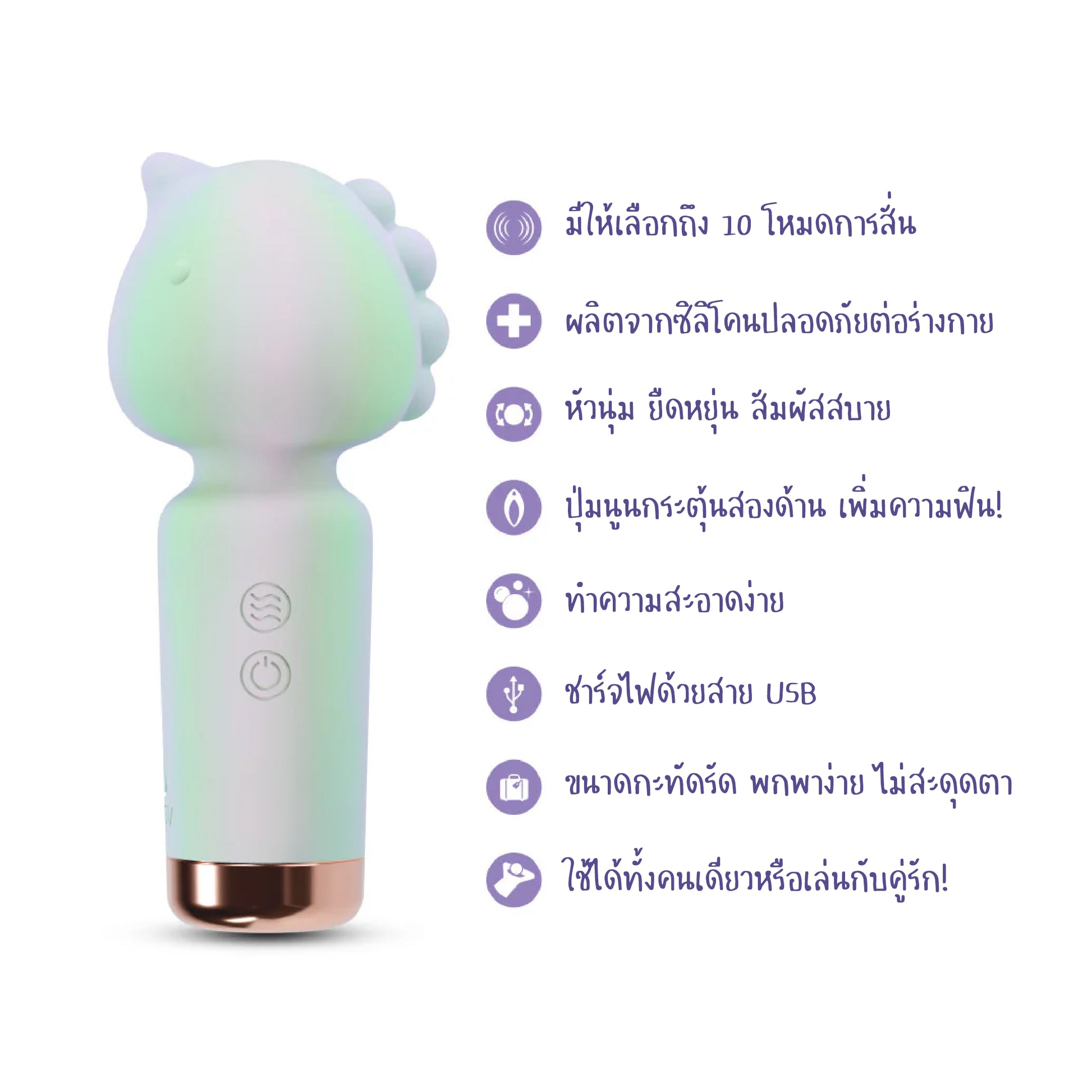 - 10 โหมดสั่น (3 ระดับความแรง และ 7 รูปแบบจังหวะ)