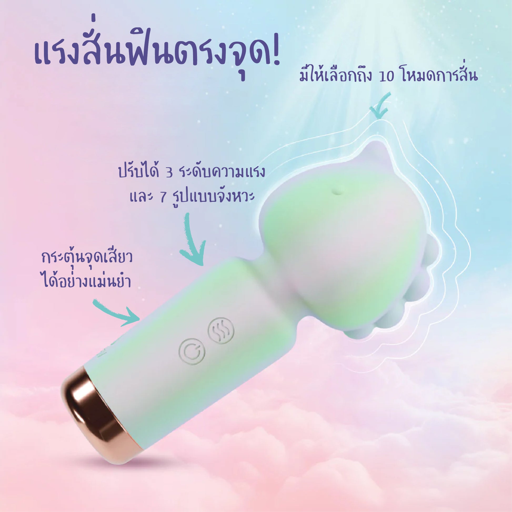 ไวเบรเตอร์สุดคิ้วท์ มาพร้อม 10 โหมดสั่นที่ออกแบบมาให้ตอบโจทย์ได้ทุกอารมณ์ ไม่ว่าจะเป็นช่วงฟอร์เพลย์ การกระตุ้นคลิตอริสแบบตรงจุด หรือจะใช้ทั่วเรือนร่างก็ฟินไม่แพ้กัน