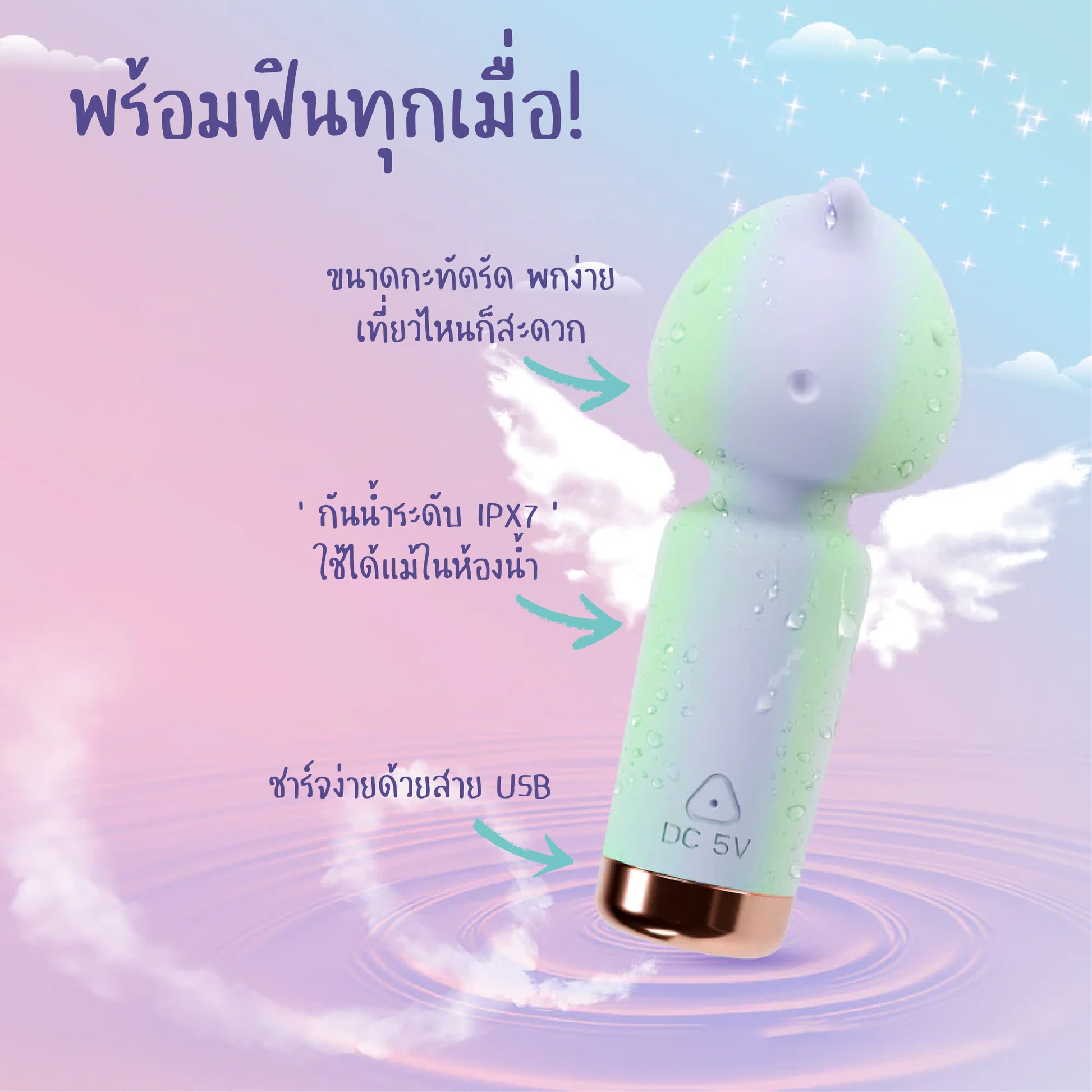 กะทัดรัด พกง่าย กันน้ำระดับ IPX7 Splashproof และชาร์จซ้ำได้ เหมาะสำหรับพกพาไปเติมความฟินได้ทุกที่