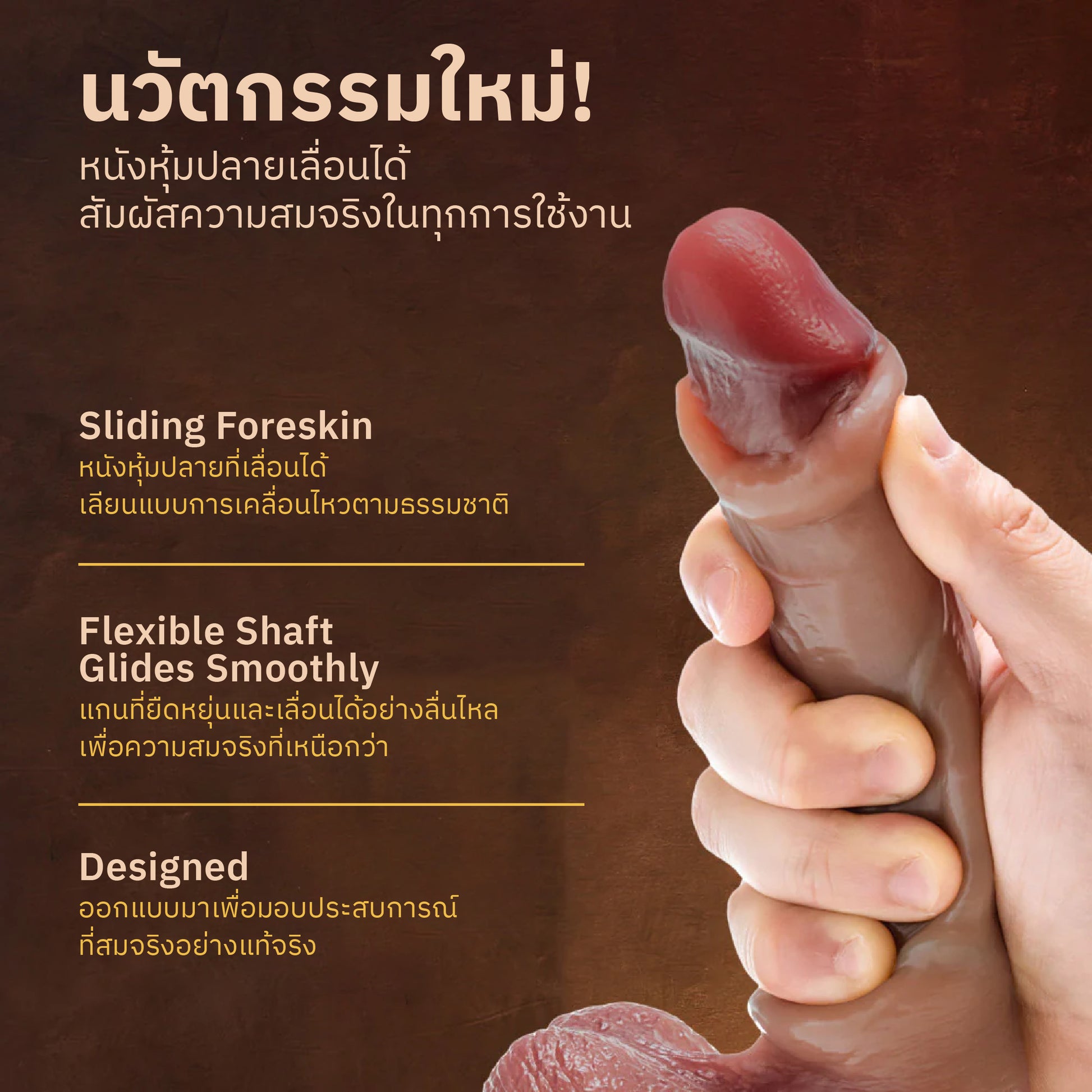 ทำให้ดูและให้ความรู้สึกเหมือนการแข็งตัวของจริง หนังหุ้มปลายที่เลื่อนได้อย่างเป็นธรรมชาติ
