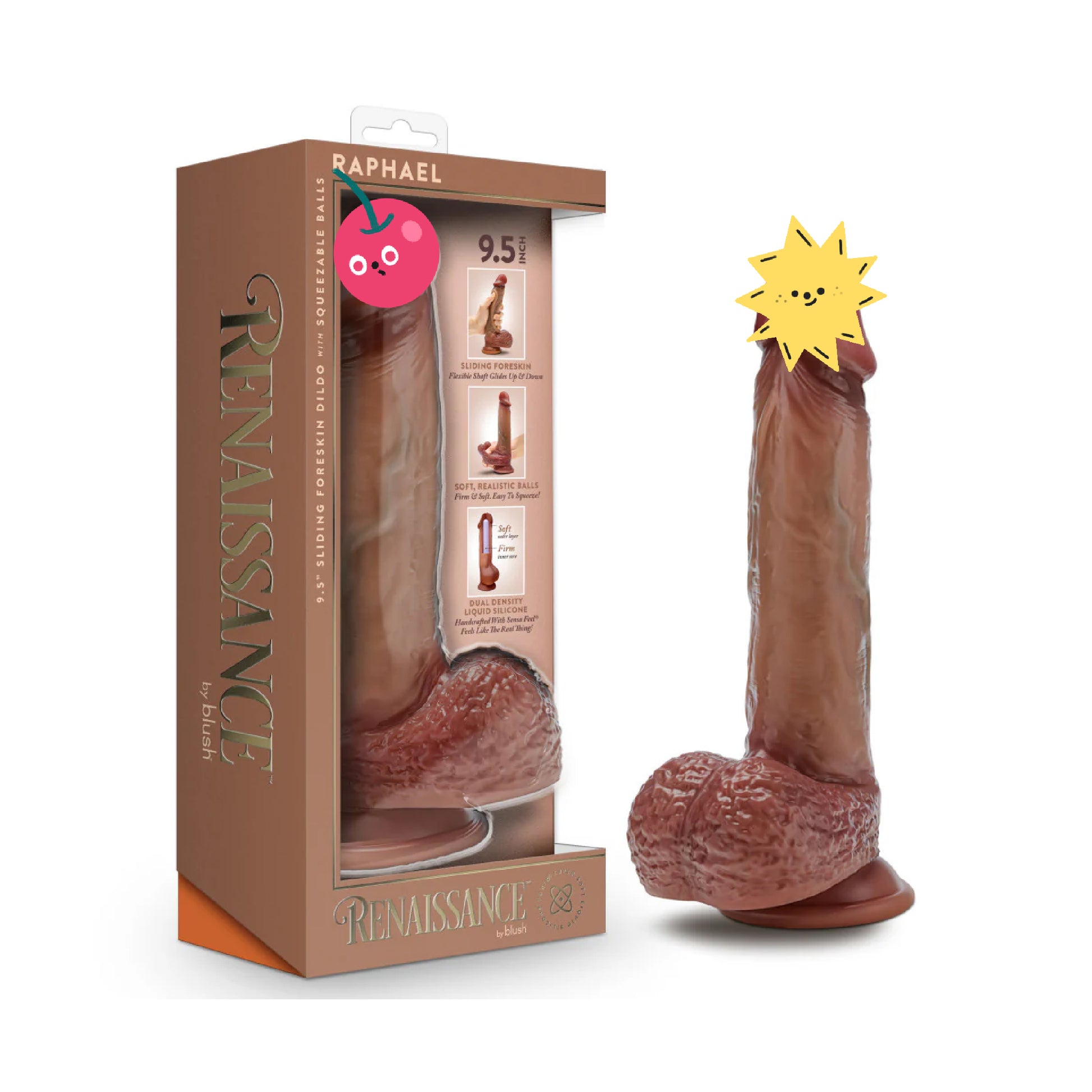 Blush Renaissance Raphael 9.5" Dual Density Sliding Foreskin Suction Cup Dildo With Squeezable Balls